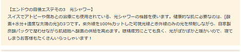 | お顔剃りエステ(フェイシャル光シャワー:70分) | ¥4,700 |